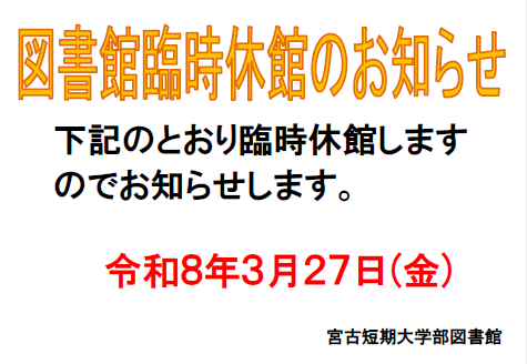 【お知らせ】3月の休館について
